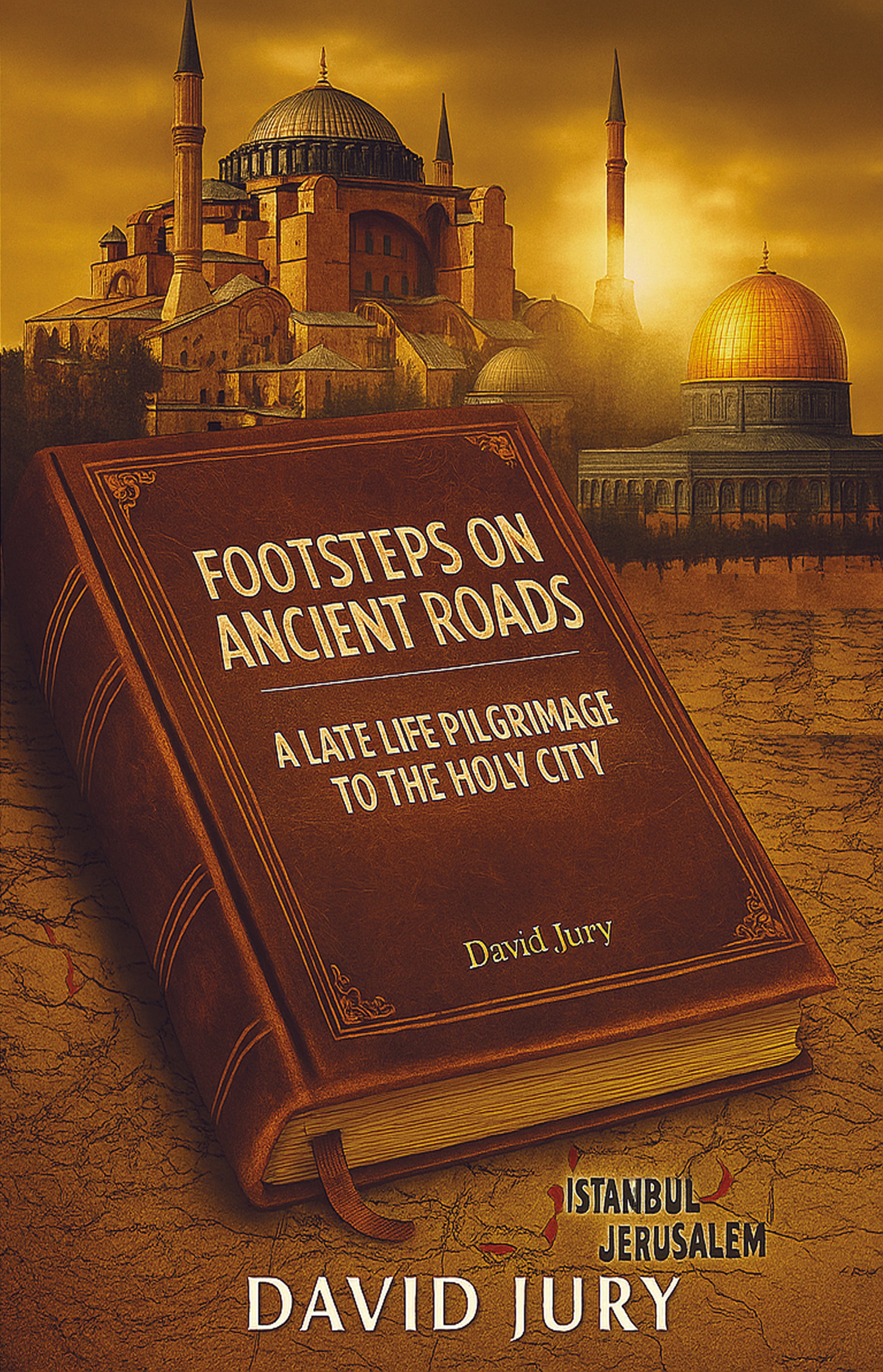 In the concluding volume of his pilgrimage trilogy, David Jury journeys from Istanbul to Jerusalem, retracing ancient routes once walked by emperors, crusaders, mystics, and pilgrims. Following the Sufi Trail Across Anatolia, sailing to Cyprus, and pressing on through Holy Land, his steps echo centuries of faith and struggle. Blending personal reflection with history and landscape, Footsteps on Ancient Roads: Istanbul to Jerusalem weaves together endurance, discovery, and a profound search for meaning. It is a testament to the timeless call of pilgrimage and the marks we leave along the way.